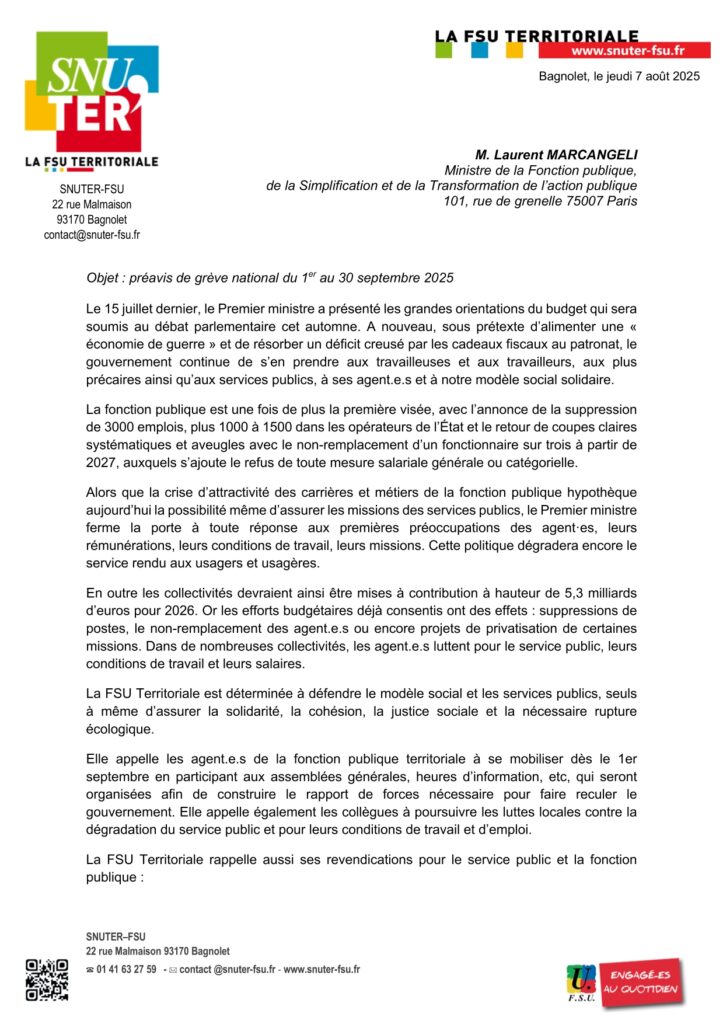 Retrouvez ci-dessous le tract et le préavis de grève de la FSU Territoriale à diffuser partout, les communiqués de presse de l’intersyndicale et de la FSU.
